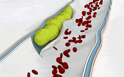 如果血脂肪、胆固醇太高,血管上会沉积许多附着物,从而造成血液的粘稠度太高,导致血流的速度越来越慢。